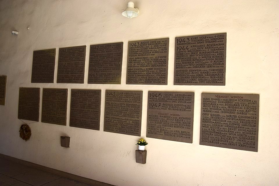 Namenstafeln Erster Weltkrieg im Innenhof des Kreuzganges der Stiftskirche.