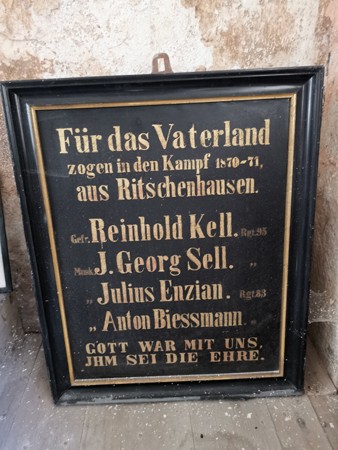 Gedenktafeln für den Feldzug 1870/71 und beide Weltkriege in der nahegelegenen Kirche.