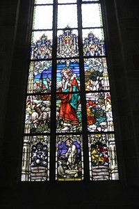 Im Heilig-Geist-Münster Gedenktafeln in zwei Nischen, Widmung an einem Kirchenfenster.
