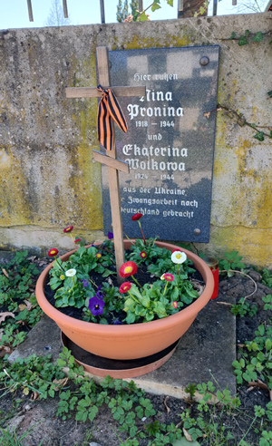 Kriegsgrab für zwei Zwangsarbeiterinnen sowie Einzelgedenken auf Privatgräbern.