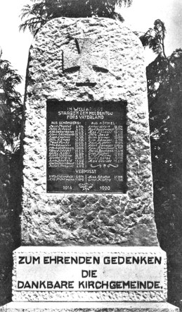 Anmerkung: Der Gedenkstein für die Gefallenen im 1. Weltkrieg wurde im Jahr 1920 auf dem Schönfelder Friedhof errichtet.