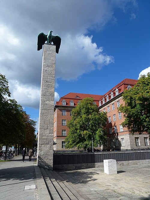 Es wurde für die 2.989 im Ersten Weltkrieg auf dem "Felde der Ehre" gebliebenen Siemens-Beschäftigten gestaltet.