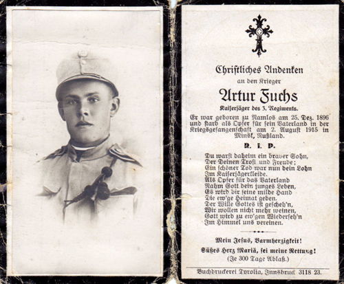 3. Regiment der Tiroler Kaiserjäger | gestorben in der Kriegsgefangenschaft, Bauer |