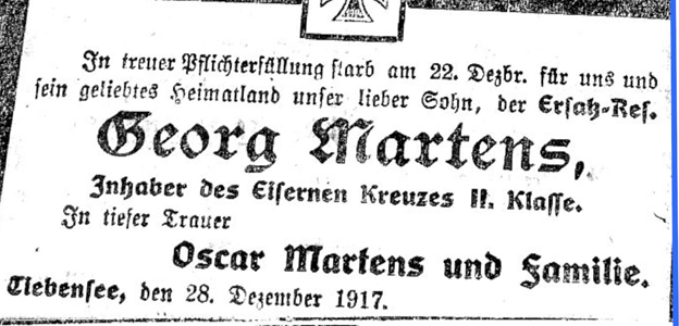 | Ers.‑Reservist | MARTENS | Georg | 22.12.1917 | Inh. EK II. Klasse |