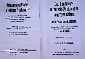Erinnerungsblätter deutscher Regimenter. Das Landwehr-Infanterie-Regiment 81 im großen Kriege – sein Leben und Kämpfen, 1928.