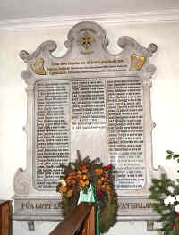 In der Lauentiuskirche schön geschmückte Marmortafel (Kriegerbund Wattens: Auszug der Mitglieder, welche den Heldentod gestorben sind),