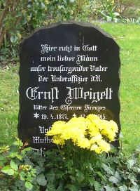 Er starb den Heldentod für uns und Schwarz – Weiß – Rot Tapfer und schlicht Treu deiner Pflicht Blank stets Dein Schild So leuchtet Dein Bild (auch Bodenplatte) |