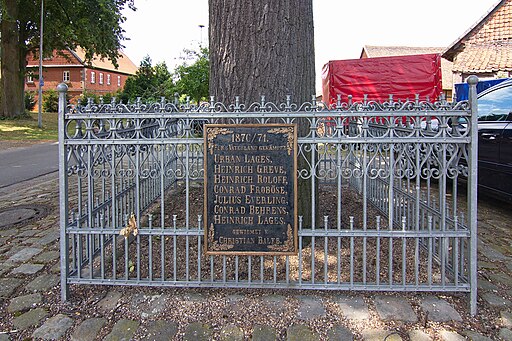 Gedenktafeln an der Umzäunung der Friedenseiche im Ortsteil Wierthe.