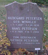 vermisst; Zum Gedenken; Familiengrab PETERSEN |