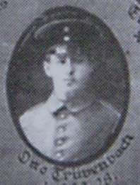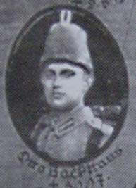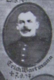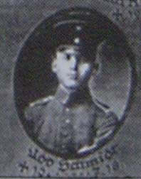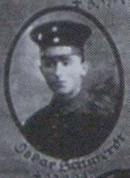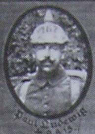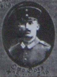 Auf der Frontseite hängt eine Ehrengirlande über einem Eisernem