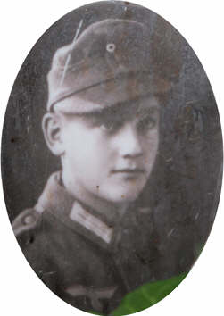 mit Namen und Fotos der Gefallenen, Teile der Tafeln vom Efeu bedeckt