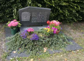 Auf dem Crawinkler Friedhof: kleines Areal mit Granitstelen mit