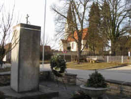 aus Betonplatten, auf einer Verkehrsinsel nahe der Kirche.