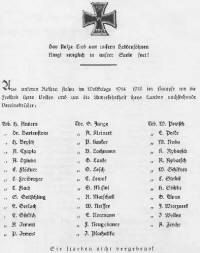 Aus unseren Reihen fielen im Weltkriege 1914 – 1918 im Kampfe um die