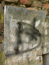 Leubus (pol. Lubiaz), Kreis Wohlau (pol. Wolowski), Niederschlesien:Offensichtliches Denkmalsfragment, in eine Mauer eingelassen und mit Farbe beschmiert
