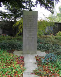 Betonstele mit der Widmung; am Fuß der Stele sind 5 Kreuze