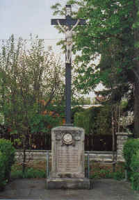 Pforzen (1870/71), Landkreis Ostallgäu, Schwaben, BayernKruzifix auf einen Sockel -an der Kreuzung, schräg gegenüber des Gasthofes Goldener Hirsch, nordöstlich der Pfarrkirche St. Valentin