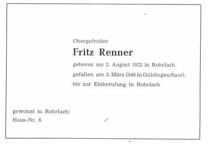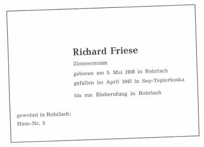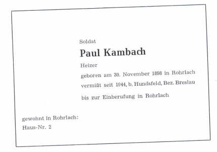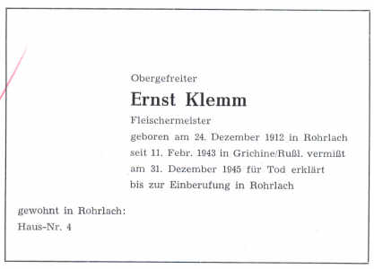 vermisst; Fleischer;; am 31.12.1945 für Tod erklärt |