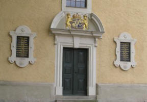Rechts und links des Eingangsportals an der Kirche von