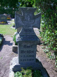 Inschrift, die Namen, die Kriegszeit und zwei Eichenblätter