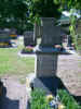 vier Grabsteine aus Sandstein nebeneinander. an seiner Spitze
