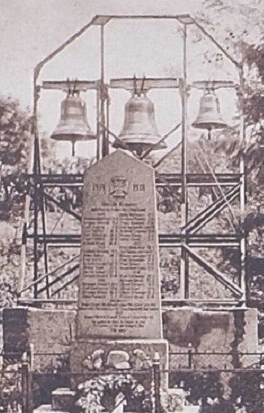 Auf der alten Postkarte sieht man, dass hinter dem Denkmal ein Glockenspiel errichtet wurde.