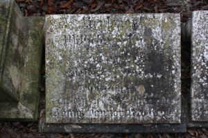 mit Namen und Inschrift auf der Seite des Gräberfeldes. Darüber