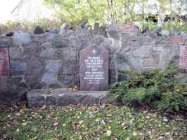 Feldsteinmauer mit eingelassenen Sandsteintafeln 1. Weltkrieg