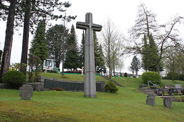 Auf dem Friedhof von Schonach steht ein großes Steinkreuz zu