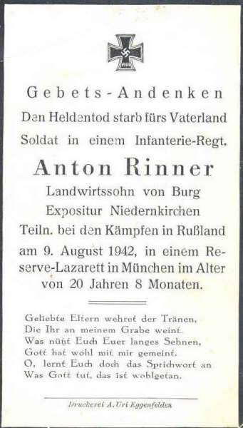 im Reserve-Lazarett gestorben; Landwirtssohn; 20