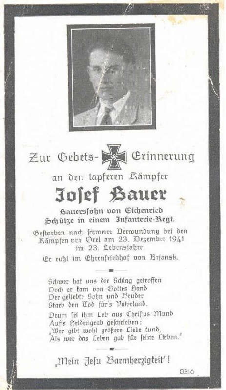 tapferen Kämpfer; Bauerssohn; gestorben nach schwerer Verwundung im