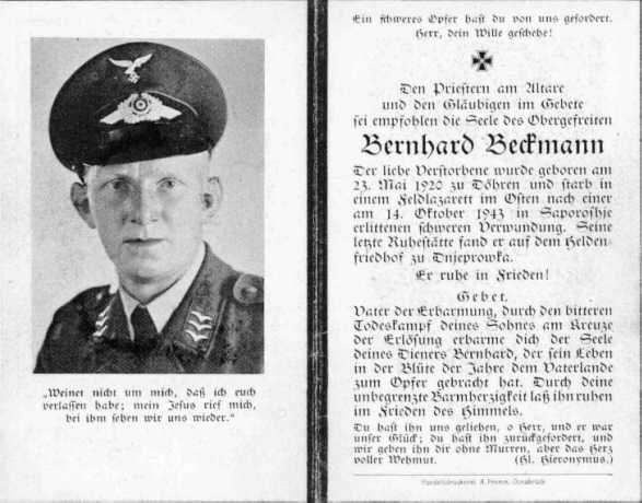 gestorben in einem Feldlaz. nach einer am 14.10.1943 in Saporoshje erhaltenen Verwundung ; beigesetzt auf dem Heldenfriedhof Dnjeprowka