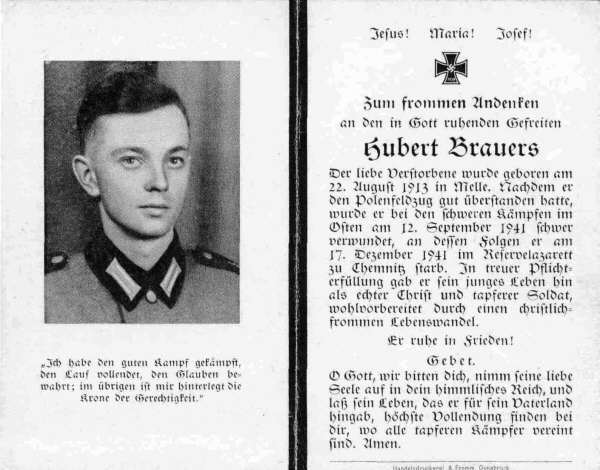 03.08.1913; im Osten am 12.09.1941 schwer verwundet; verstorben im