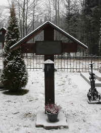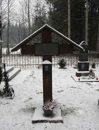 Im Soldatenfriedhof Volders; zwei überdachte Holzkreuze