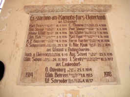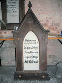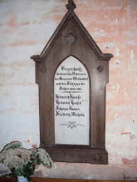 Schriftfeld an der Südwand des Kirchenschiffs, 2 Holztafeln im Turm