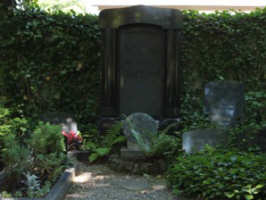Lebensbäumen eingefaßt. Auf dem Areal steht ein Gedenkstein.