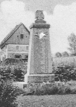 Reste eines Denkmals für die Gefallenen des 1. Weltkriegs am Dorfplatz gegenüber der Kirche.