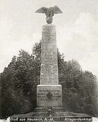 Ansichtskarte von Neuteich mit Ansicht des Denkmals (enthält Namen aus Neuteich,