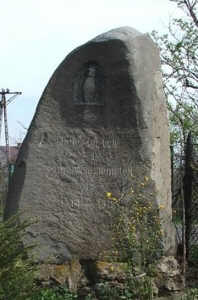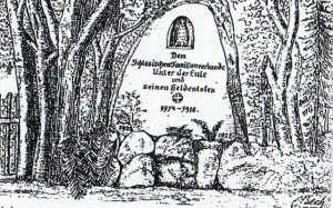 privaten Grundstück steht hier ein rund 2 m hoher Gedenkstein