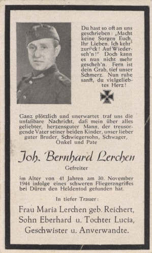 Jahre; infolge eines schweren Fliegerangriffes bei Düren |