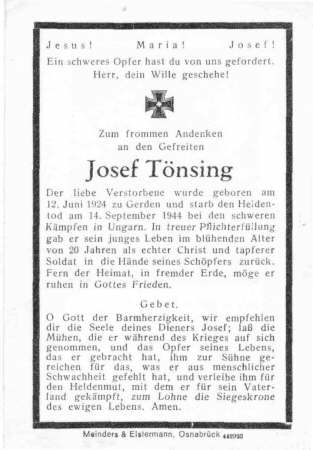 gestorben am 19.09.1944 in Praid, Rumänien – auch dort beigesetzt. |