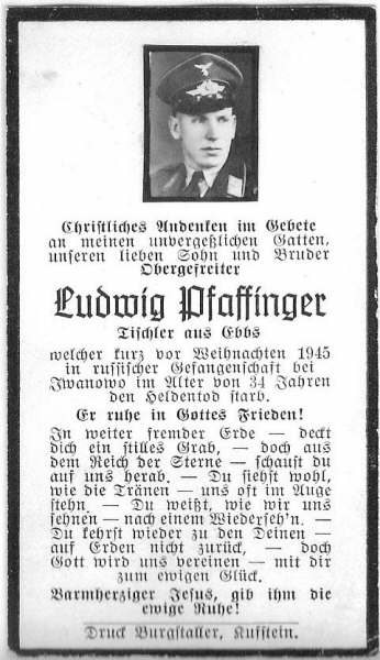 An der Gedenktafel in Ebbs als PFANNGER, Ludwig angeführt