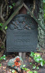 Gleich am Eingang dieses Gräberfeldes steht eine Kirchenglocke. Sie trägt eine kleine Tafel mit Widmung.