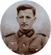 Auf dem Friedhof zwei Reihen von Steinkreuzen mit jeweils einem bis vier Namen von Gefallenen des Zweiten Weltkrieges