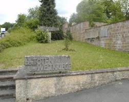 Links vom Eingang in den Friedhof befindet sich das Kriegerdenkmal. In dessen hinterem Teil ein aus zwei Steinfindlingen zusammengesetztes T. An der Friedhofswand sind vier Gedenktafeln angebracht.