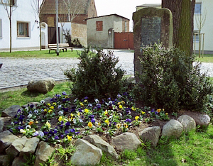 Auf dem kleinen Dorfanger unter einer großen Eiche steht das wohl in den 1920er Jahren für die Gefallenen des Ersten Weltkrieges errichtete Kriegerehrenmal.