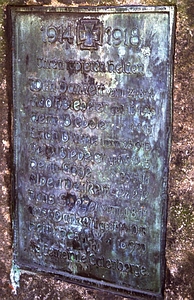 An der großen schlichten Steinstele ist eine Tafel montiert, darauf die Inschrift.