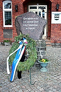 Der Findling erinnert an die Ehleschlacht während der Befreiungskriege. Am 05.04.1813 hatten sich im Ort französische Truppen unter Napoleons Stiefsohn verschanzt,