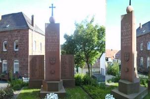 Das Kriegerdenkmal befindet sich neben der Kirche St. Dorothea. In der Mitte steht eine dreiseitige Sandsteinstehle mit Kugel und Kreuz. Die drei Seiten sind nach innen halbrund. Vorne das Ortswappen. Links und rechts zwei Namenssteine.