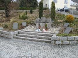 Neben der Heilig-Geist-Kirche befindet sich das Kriegerdenkmal. Drei Kreuze die in einem Kiesbett stehen. Links und rechts daneben befinden sich die Namenstafeln aus Metall.